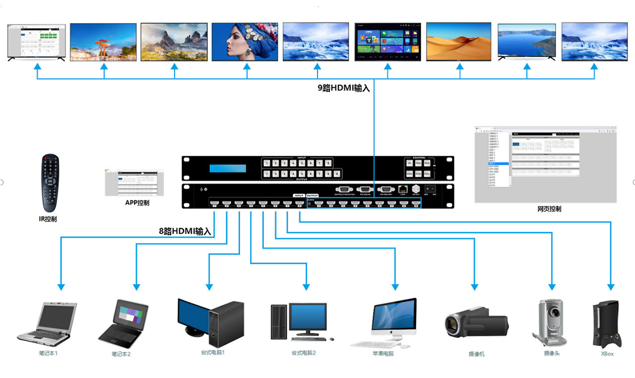 HDMI-8X9矩阵还支持Web控制,支持安卓和苹果APP控制,极大的方便了用户的使用。