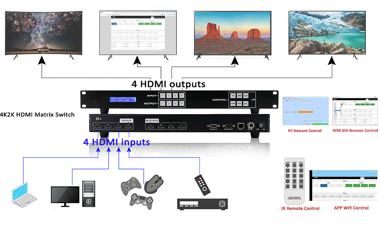 HDMI-44矩阵还支持Web控制,支持安卓和苹果APP控制,极大的方便了用户的使用。