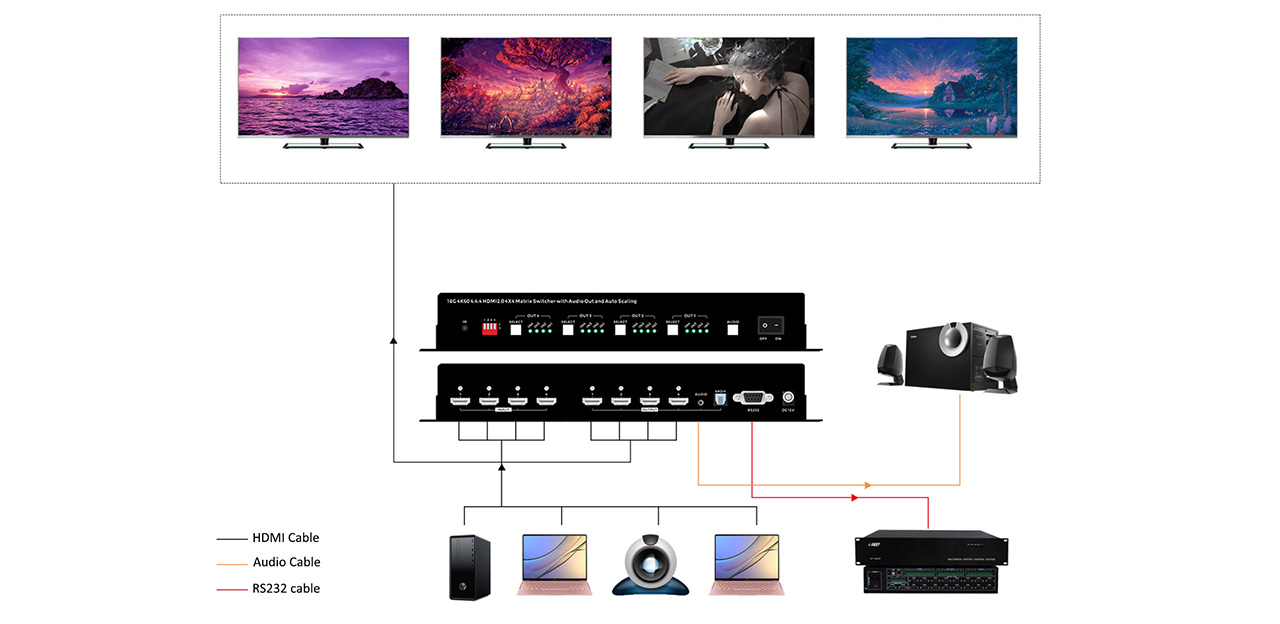 Ø 支持4路HDMI信号输入,4路HDMI输出