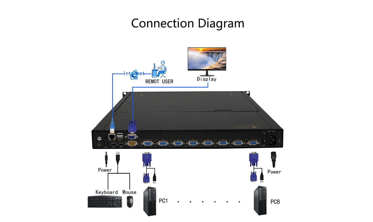 USB VGA模块线缆,前置USB接口,支持IP远程控制 |