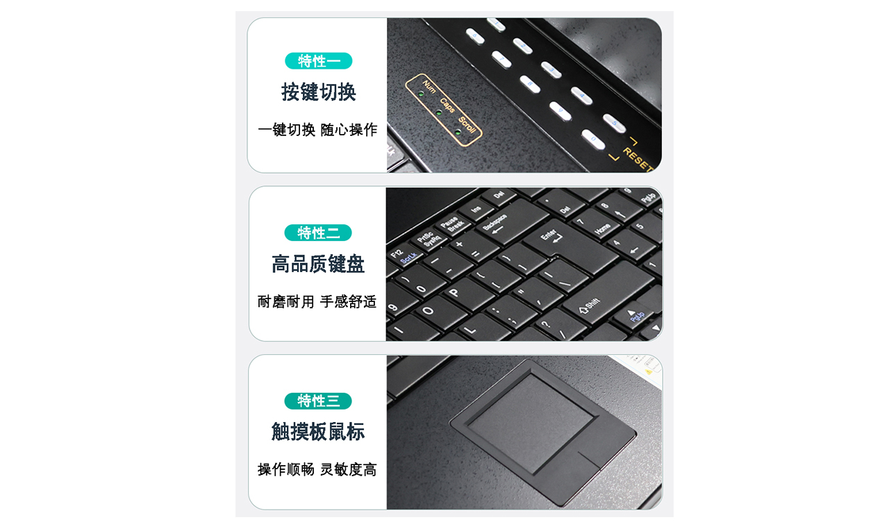 · 整合15.6" LED屏/键盘/鼠标/ 切换器四合一体机